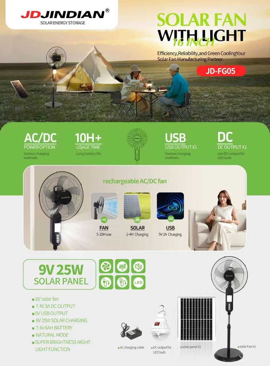 The fan comes with a built-in rechargeable battery designed for long-term use.